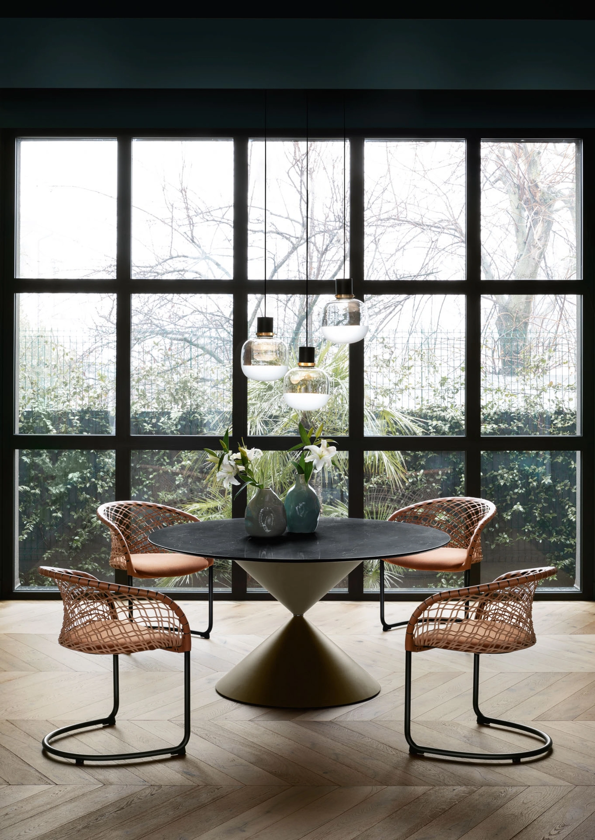 La sospensione Ghost di Midj rappresenta un'espressione raffinata del design contemporaneo, concepita per offrire un'illuminazione sia diffusa che diretta. Il suo diffusore è magistralmente realizzato in vetro, combinando sezioni trasparenti e satinate per modulare l'emissione luminosa e ottimizzare la resa estetica nell'ambiente. La struttura portante è in metallo nero, valorizzata da un anello dorato che aggiunge un dettaglio distintivo. Questa meticolosa combinazione di materiali e tecniche costruttive assicura non solo un'estetica impeccabile, ma anche una funzionalità illuminotecnica di alto livello, garantendo durabilità e integrazione armonica in contesti d'arredo ricercati.