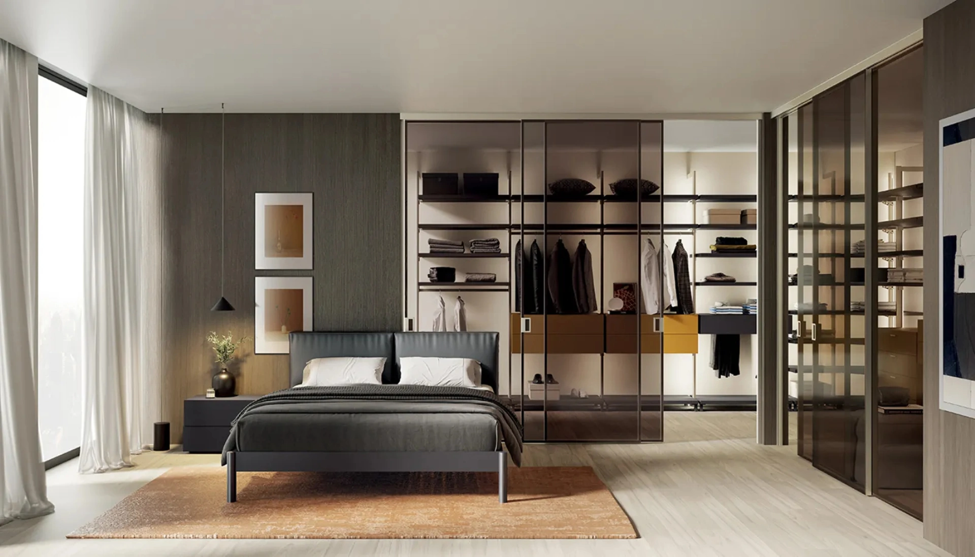 Axial System è una cabina armadio di Dielle Modus che offre una nuova visione nell'organizzazione degli spazi caratterizzata da leggerezza e un'estetica raffinata. Il cui design innovativo si fonda su un versatile sistema a palo portante, installabile a parete, a soffitto o liberamente al centro della stanza, garantendo una vasta gamma di soluzioni progettuali e la capacità di delineare gli ambienti con discrezione ed equilibrio. La sua architettura essenziale dona un'impressione di maggiore ampiezza e leggerezza, mentre gli elementi accessori, ancorati direttamente al palo, disegnano un'armonia di geometrie pulite e sofisticate. Questa cabina armadio è completamente personalizzabile con ripiani, tubi appendiabiti, porta scarpe, uno specchio girevole, supporti per TV e numerosi altri accessori, fondendo in modo impeccabile alta funzionalità e un'estetica di pregio. Offriamo un servizio completo di progettazione su misura, consegna e montaggio professionale, attivo con grande attenzione nelle aree di Varese, Chiasso e Como e limitrofe, per garantirti la massima comodità. La tua piena soddisfazione a lungo termine è la nostra priorità assoluta, assicurando un investimento nella durabilità e nello stile del tuo arredamento con un supporto post-vendita sempre presente e affidabile.