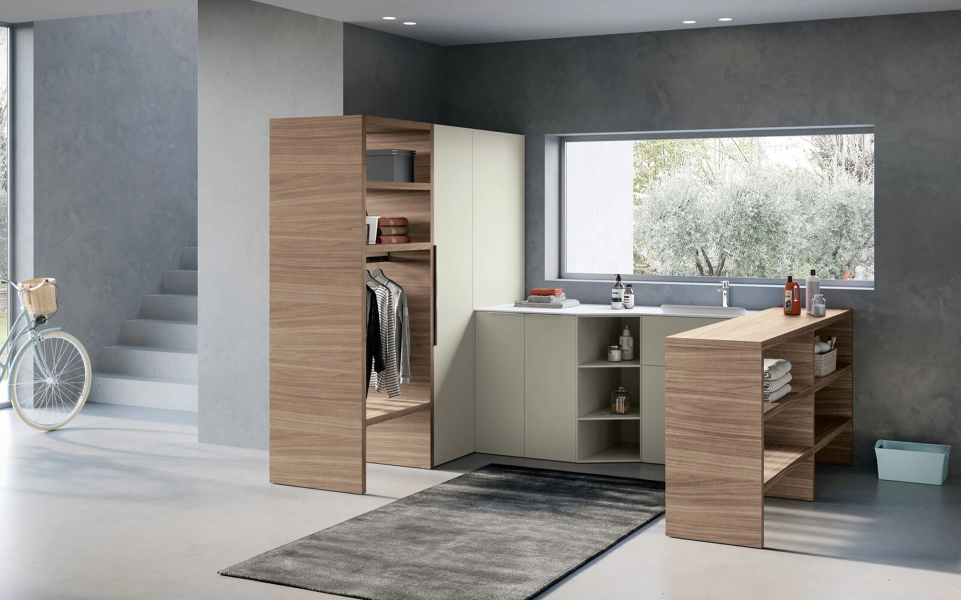 La linea Airy My Space di RCR rappresenta una soluzione avanzata per l'arredo bagno, specificamente progettata per massimizzare l'efficienza degli spazi operativi, quali le lavanderie. La collezione si distingue per la sua modularità e funzionalità intrinseca, abbinata a un design contemporaneo e compatto. I componenti d'arredo sono fabbricati impiegando materiali di prima scelta, come il laccato opaco, noti per la loro elevata qualità e intrinseca resistenza all'umidità. Elementi tecnici e pratici, quali il piano in Technoteck con lavatoio integrato, sono integrati per ottimizzare l'usabilità. Questa gamma consente la creazione di ambienti estremamente organizzati e curati esteticamente, adattandosi con precisione a molteplici configurazioni spaziali. Questo sistema è concepito per garantire un'elevata durabilità e un'estetica raffinata, assicurando performance costanti nel tempo.