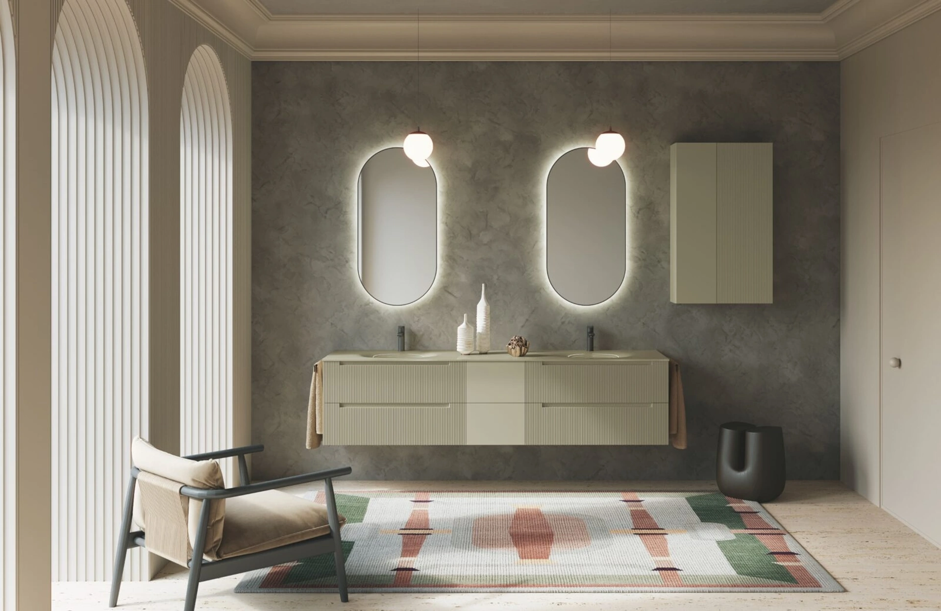 Il mobile bagno sospeso Armonia 03 di RCR Arredo Bagno incarna un design contemporaneo e funzionale, ideale per un ambiente bagno moderno. La sua caratteristica principale è la distintiva lavorazione cannettata, che conferisce alla superficie una raffinata tridimensionalità e un dinamismo visivo. Realizzato con finitura laccato opaco, questo modello è disponibile in un'ampia palette di 41 colorazioni, offrendo una notevole versatilità di personalizzazione. La struttura è progettata per un'integrazione armonica in diversi contesti stilistici, garantendo solidità e un'estetica elegante. Per un'analisi approfondita delle specifiche tecniche e delle opzioni di finitura, si invita a consultare la documentazione del prodotto.