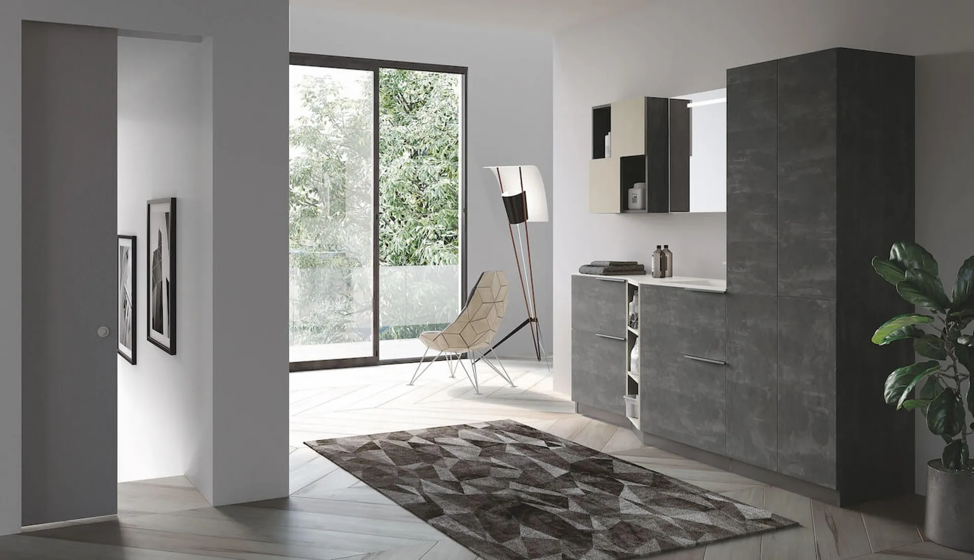 La soluzione d'arredo bagno lavanderia Laundry 14 di Puntotre è stata concepita per una installazione a terra, ideale per ambienti che richiedono versatilità e stabilità strutturale. Questo sistema modulare integra efficacemente contenitori spaziosi e alloggiamenti specifici per elettrodomestici, ottimizzando gli spazi funzionali. Il design è caratterizzato da una combinazione di elementi con maniglia e sistemi push-pull, che conferiscono un'estetica moderna e pulita. Le finiture, come l'Ares con texture cemento, sono in linea con le ultime tendenze del settore. Il programma LAUNDRY permette una perfetta integrazione visiva di lavatrice e asciugatrice. Un elemento innovativo è la tavoletta del lavatoio, che si converte in un lavabo standard quando non in uso, massimizzando la praticità. La struttura impiega materiali robusti come il laminato Ares e il top in Ocritech Opaco, garantendo durata e resistenza. Questo prodotto rappresenta un investimento nella funzionalità e nel design intelligente per il vostro ambiente bagno, con una progettazione attenta ai dettagli e alla durabilità.