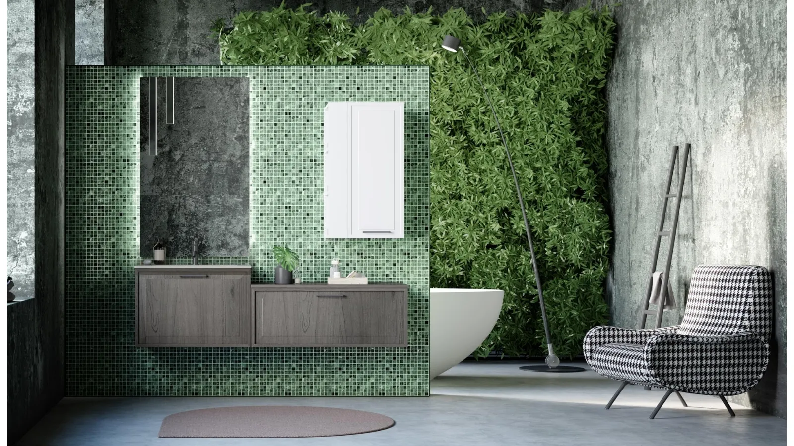 Scopri la nostra serie di Arredo Bagno moderno e mobili bagno sospesi in legno, come il modello Roma 02