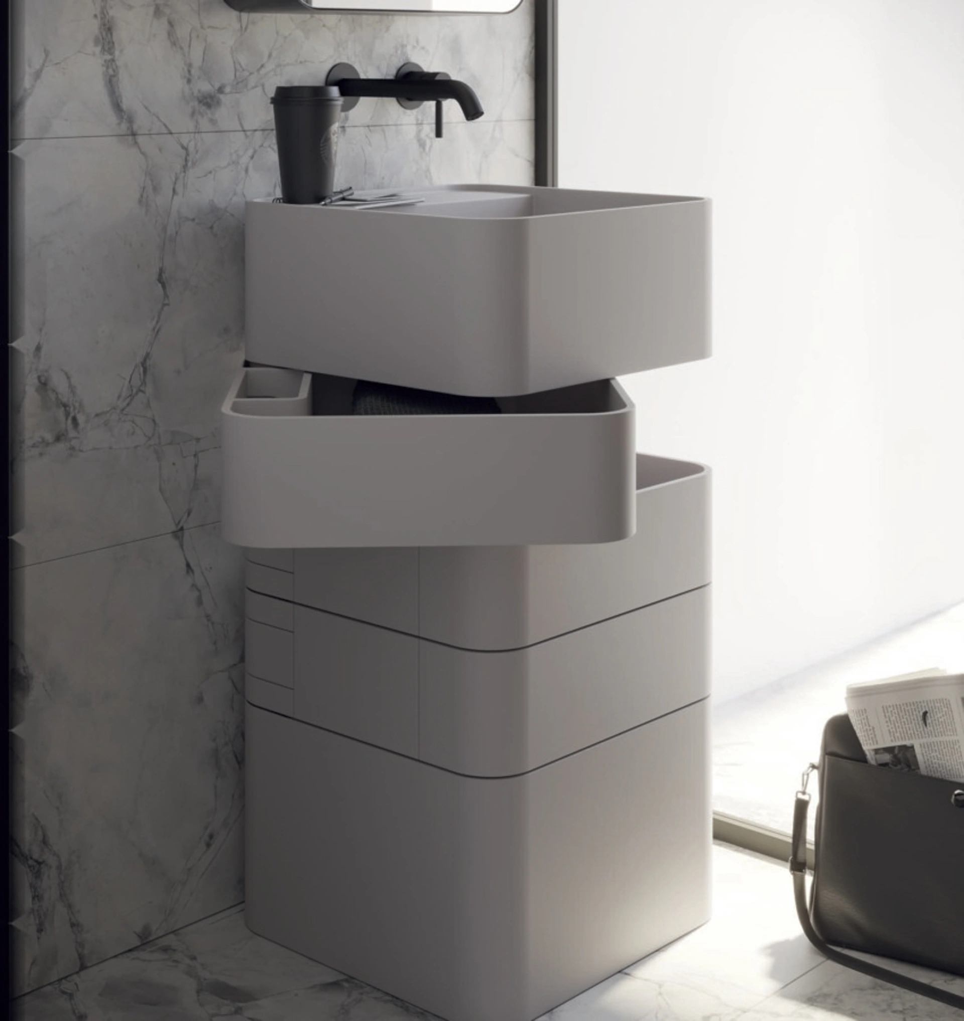 Il mobile bagno Twist, creazione di RCR Italia e dell'architetto Paolo Santandrea, si distingue per il suo design innovativo e la funzionalità ottimizzata. Il cuore del sistema è il lavabo con tre cassetti rotanti e un vano fisso, una soluzione intelligente che massimizza lo spazio sotto il lavabo e semplifica gli allacci idraulici. Realizzato con materiali di pregio come il resistente Technokarm per il lavabo e il robusto poliuretano espanso per i cassetti, garantisce durabilità e resistenza all'umidità. Offriamo un servizio di progettazione su misura e installazione professionale, coprendo le aree di Cantù, Como e Lecco, per assicurarti un'esperienza d'acquisto senza pensieri. La personalizzazione è ampia, con diverse finiture e combinazioni cromatiche. La nostra garanzia di qualità e l'assistenza post-vendita sono il sigillo di un prodotto che unisce stile e funzionalità durature.