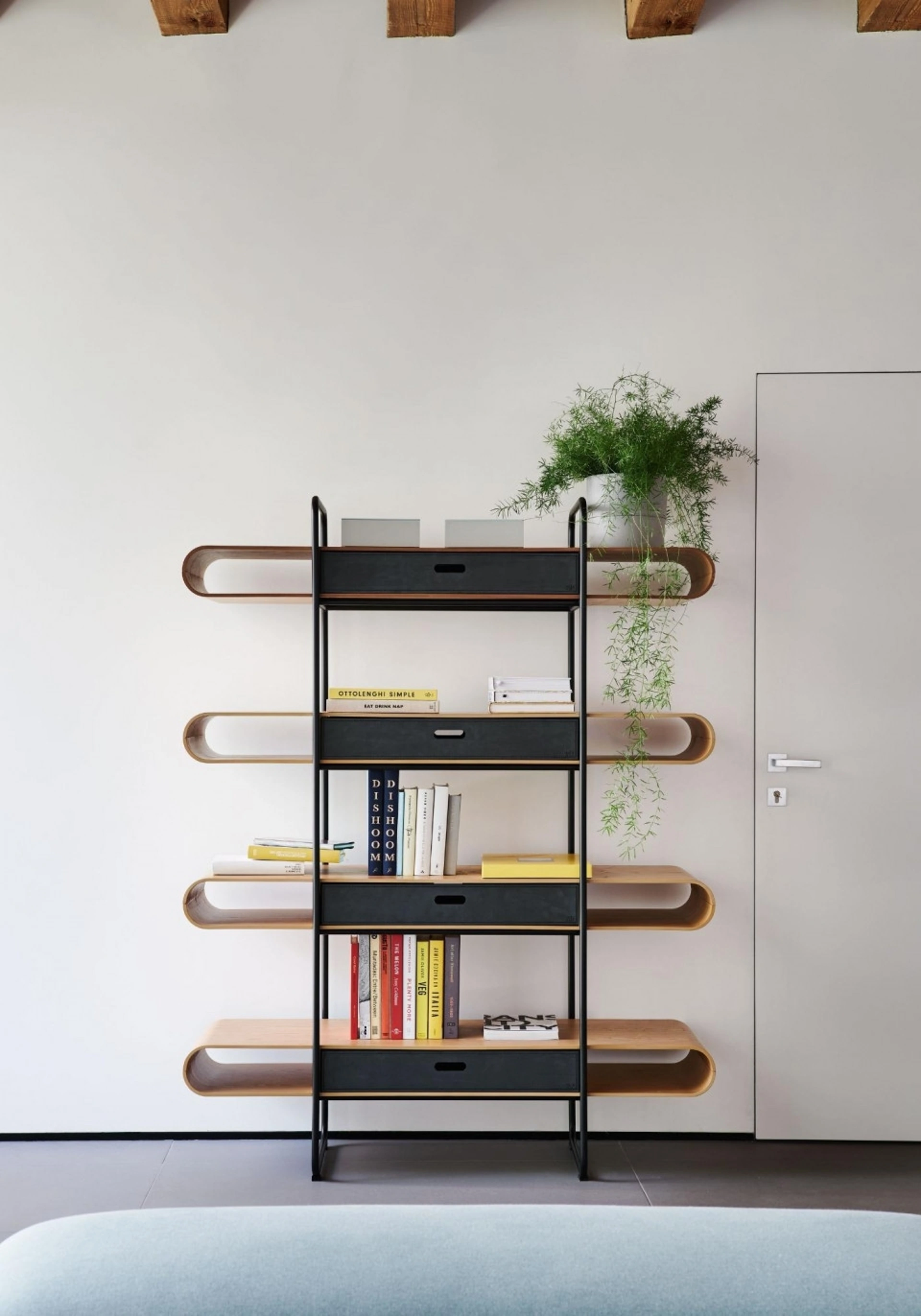 Le librerie a parete della serie Apelle, firmate Midj, si distinguono per la loro solida struttura metallica e i ripiani in pregiato legno. Un'ulteriore personalizzazione è offerta dalla possibilità di integrare cassetti, disponibili con rivestimento in cuoio di alta qualità o in cuoio toscano. La linea presenta molteplici configurazioni, con varianti in altezza e numero di cassetti (da uno a quattro), tutte contraddistinte da un'estetica raffinata e adattabile, capace di inserirsi con armonia in contesti sia tradizionali che contemporanei. Le misure indicative includono il modello Apelle 4 (approssimativamente L 135 x P 43,8 x H 173 cm) e il modello Apelle 3 (circa L 135 x P 43,8 x H 131 cm). Questa libreria è studiata per offrire massima efficienza e flessibilità. L'eccellenza del design italiano si fonde con la selezione di materiali di prima qualità, creando un complemento d'arredo che supera le aspettative in termini di estetica, durabilità e innovazione costruttiva.