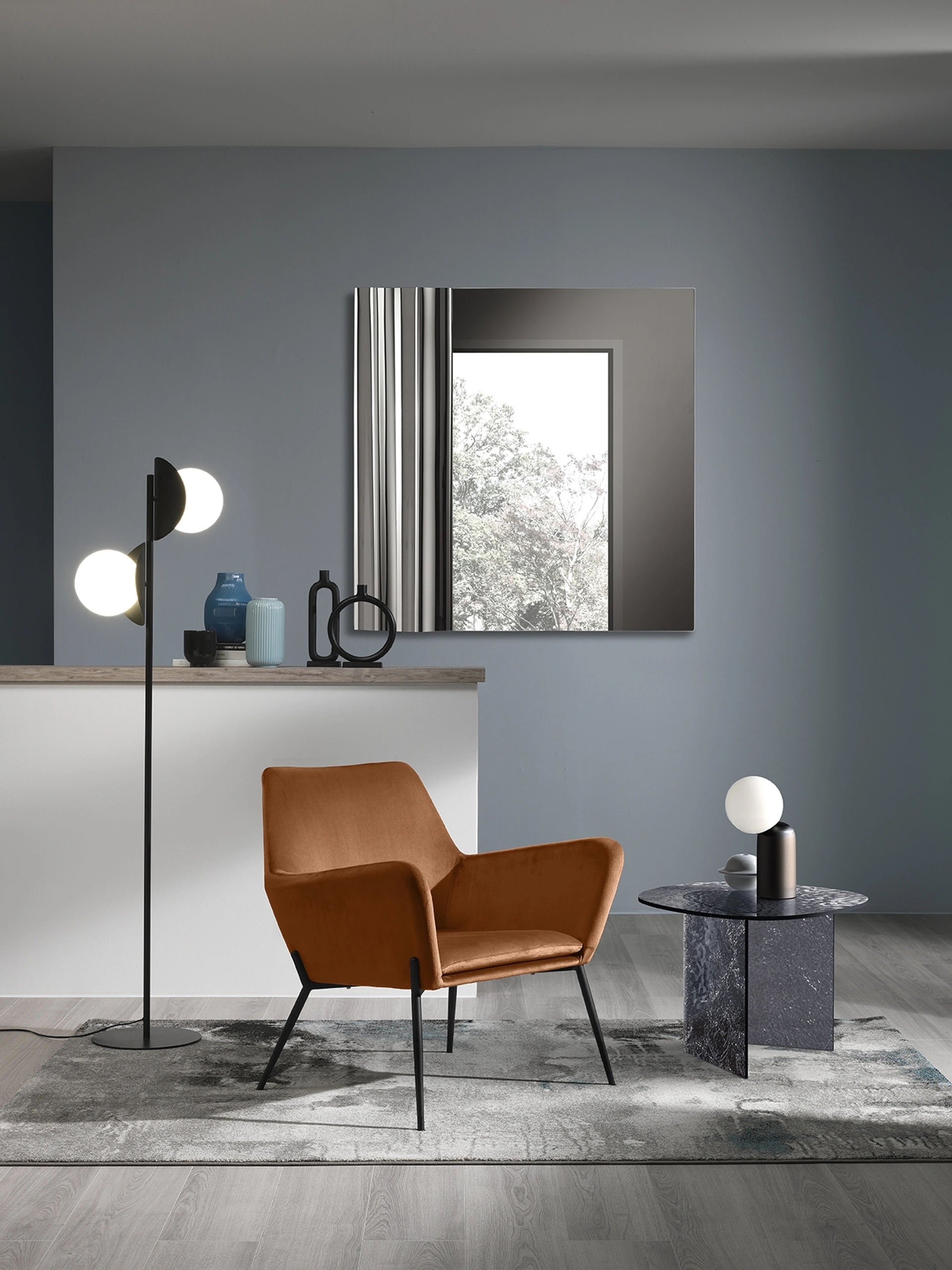 La poltrona Gin, firmata Stones, incarna un design raffinato e una notevole versatilità, inserendosi con armonia in svariati contesti d'arredo, dal living ad ambienti più intimi. La sua ergonomia è valorizzata da una seduta rivestita in velluto di alta qualità, che offre una sensazione tattile superiore e un comfort avvolgente. Le gambe, realizzate in metallo nero opaco, conferiscono stabilità e un'estetica slanciata e contemporanea. Questo elemento d'arredo è studiato per creare un accento distintivo, elevando l'estetica di spazi moderni e classici con la sua presenza unica. Questo articolo è il risultato di un'accurata selezione di materiali e di un processo produttivo che punta all'eccellenza, assicurando un'esperienza d'uso superiore e una lunga durata.