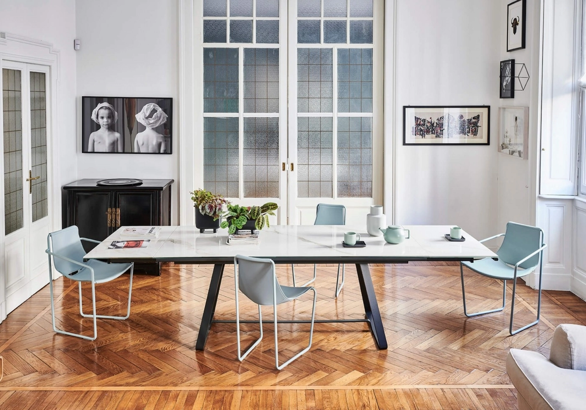 Questo esemplare di design, Il tavolo da pranzo Alfred Allungabile di Midj è un pezzo d'arredamento dall'estetica contemporanea e linee pulite, ma distintivo. Distinto per una solida struttura a slitta in metallo laccato, offerto in molteplici colorazioni, offre l'opportunità di selezionare tra superfici in cristallo, gres porcellanato o essenze lignee, rendendolo adattabile per diversi ambienti dedicati al pasto. È una realizzazione interamente italiana, frutto della collaborazione di professionisti del design, e si fa notare per la sua praticità e linee pulite, con un sistema di estensione scorrevole che consente di ampliare notevolmente la sua superficie utile. La scelta di materiali pregiati e una costruzione attenta assicurano una durabilità eccezionale e un'estetica inalterata nel tempo.