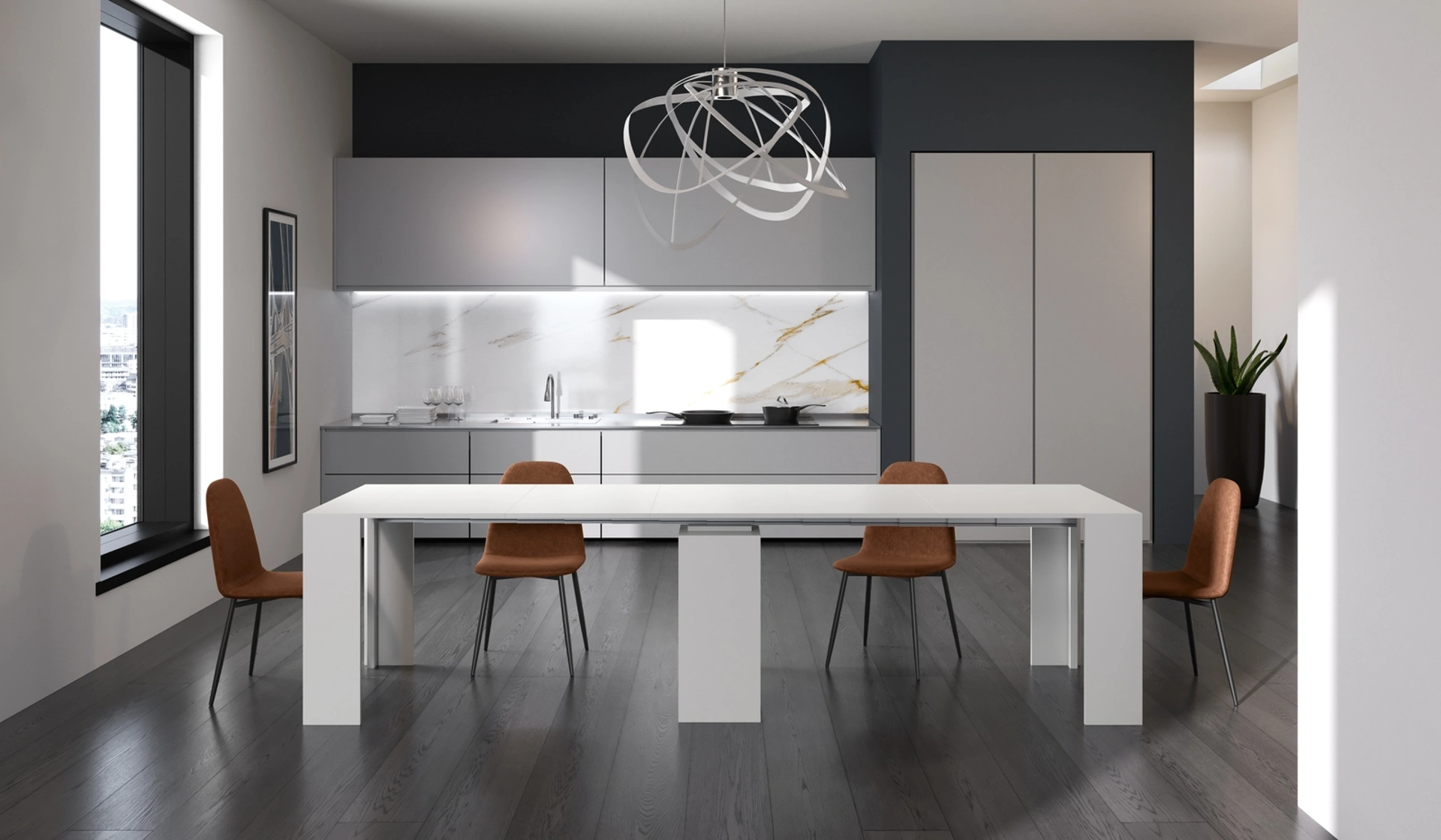 La Consolle Allungabile Pinocchio OM/114/B di Stones è la soluzione ideale per chi cerca un arredo funzionale e di design, con un servizio di consegna e montaggio efficiente nelle province di Cantù, Como e Varese. Questo versatile tavolo salvaspazio, realizzato con top e gambe in MDF laccato antigraffio e allunghe in melaminico, si trasforma con facilità da compatta consolle a spazioso tavolo da pranzo per un massimo di 10 persone. Il colore bianco antigraffio si adatta a ogni ambiente. Il nostro impegno si estende oltre la vendita, garantendoti piena assistenza post-vendita e la tua completa soddisfazione nel tempo.